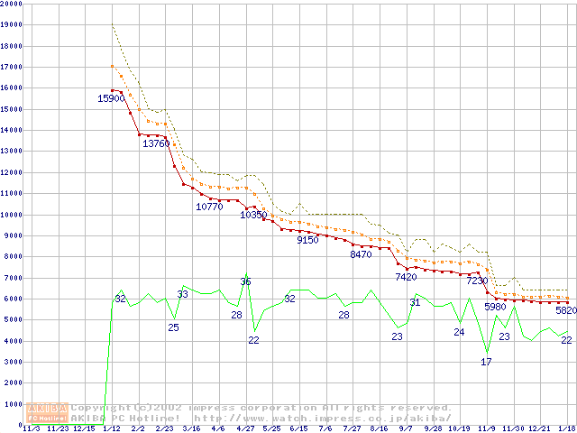 Celeron 1.30GHz FC-PGA2 リテールパッケージの価格推移