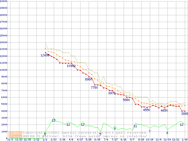Socket A (PGA,FSB 200MHz,L2 64KB,Morgan)の最安値推移