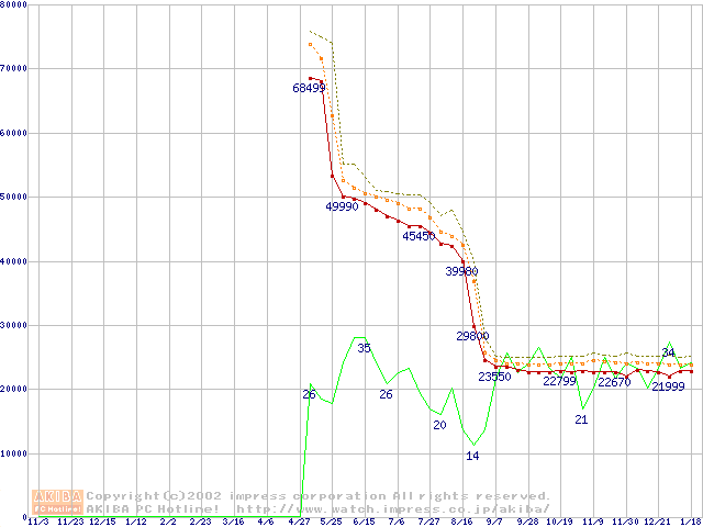 Pentium 4 2.4B GHz リテールパッケージの価格推移