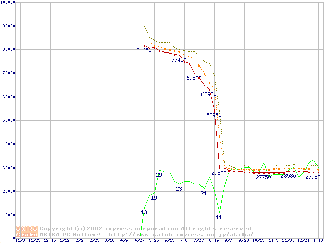 Pentium 4 2.53GHz リテールパッケージの価格推移