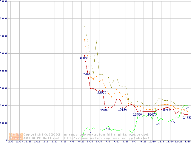 PC3200(DDR400) DDR SDRAM DIMMの最安値推移