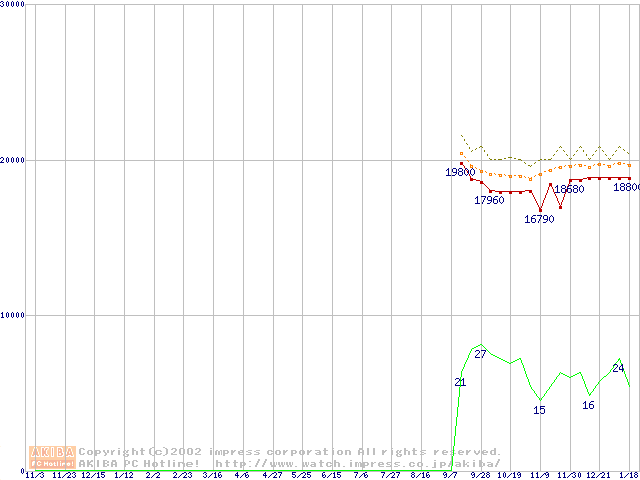 Athlon XP 2200+ (1.8GHz) リテールパッケージの価格推移
