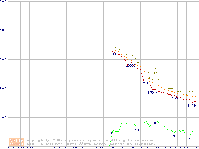 MKシリーズ (9.5mm,5400rpm,16MB,FDB,20GB/Platter)の最安値推移