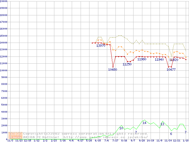 PC800-40 DRDRAM RIMM ECC対応の最安値推移