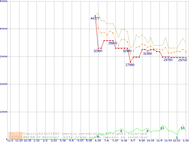 PC800-40 DRDRAM RIMM ECC対応の最安値推移