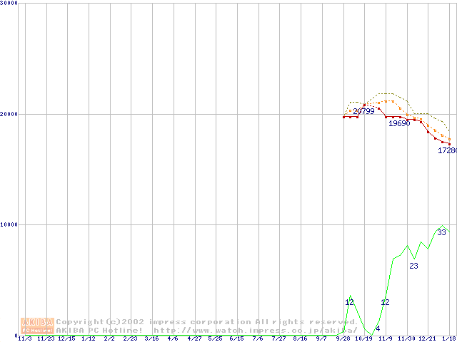 HDD主要製品(最安値1万5千円~2万円未満)の最安値推移