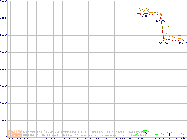Socket 603 (micro-PGA,FSB 400MHz,L2 512KB,Prestonia)の最安値推移