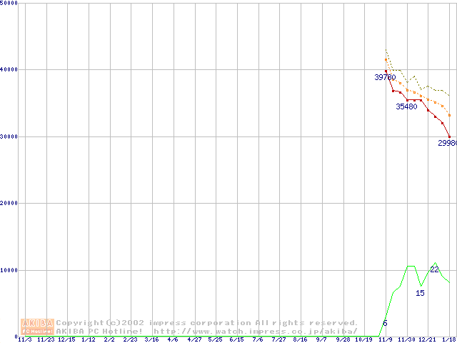 Socket A (OPGA,FSB 333MHz,L2 256KB,Thoroughbred)の最安値推移
