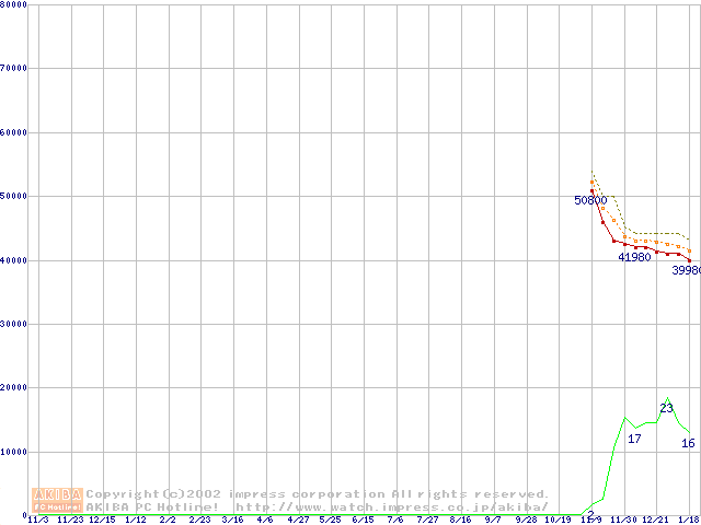 Socket A (OPGA,FSB 333MHz,L2 256KB,Thoroughbred)の最安値推移