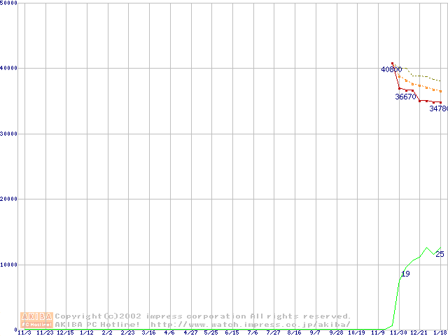 Athlon XP 2600+ (2.08GHz) リテールパッケージの価格推移