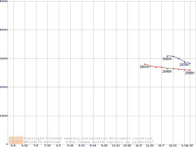 | Socket A (OPGA,FSB 266MHz,L2 256KB,Thoroughbred)の最安値推移 |