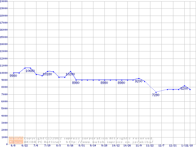 | [↓次グラフ]: | Socket A (PGA,FSB 266MHz,L2 256KB,Thunderbird)の最安値推移 |