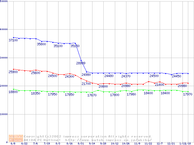 | [↓次グラフ]: | Socket 370 (FC-PGA2,FSB 133MHz,L2 256KB,Tualatin)の最安値推移 |