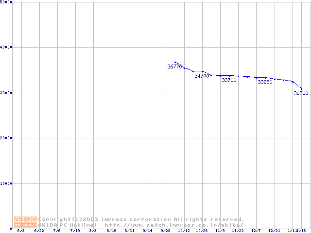 | [↓次グラフ]: | Deskstar 180GXP (7200rpm,2MB,UltraATA/100,FDB)の最安値推移 |