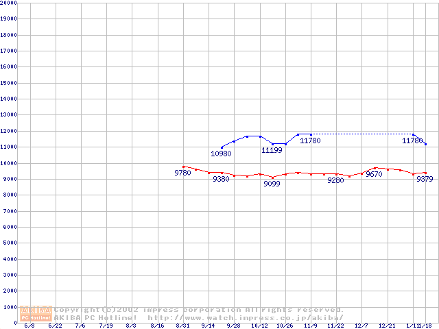 | [↓次グラフ]: | DiamondMax D540X-4G (5400rpm,UltraATA/133,40GB/Platter)の最安値推移 |