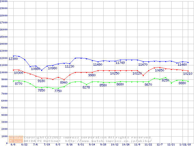 | [↓次グラフ]: | Barracuda 5400.1 (5400rpm,UltraATA/100,2MB,FDB)の最安値推移 |
