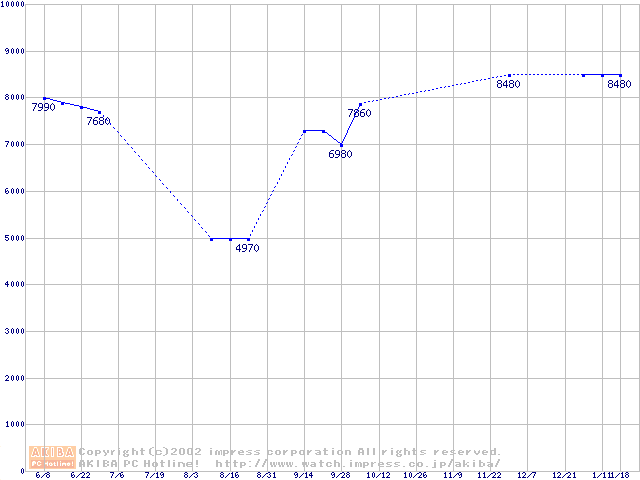 | [↓次グラフ]: | WD Caviar(Special Edition) (7200rpm,UltraATA/100,8MB)の最安値推移 |