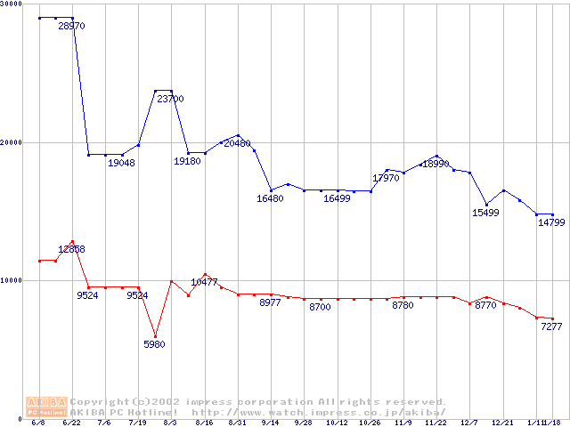| [↓次グラフ]: | PC3500(DDR433) DDR SDRAM DIMMの最安値推移 |