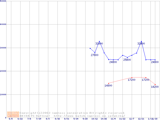 | [↓次グラフ]: | PC133 SDRAM DIMM CasLatency=3の最安値推移 |