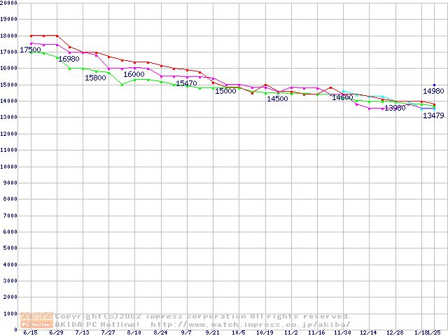 | [↑前グラフ]: | 2.5インチHDD 30GB~40GB未満(9.5mm厚)の最安値推移 |