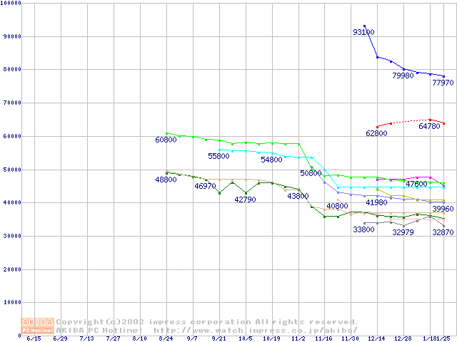 CPU主要製品(最安値2万円~3万円未満)の最安値推移