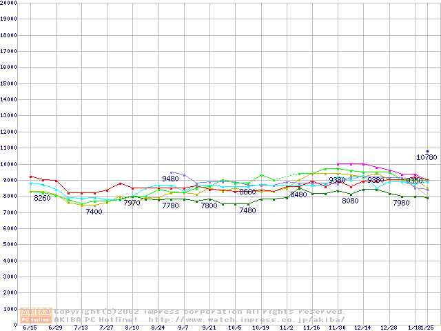 HDD 60GB~80GB未満(7200rpmクラス)の最安値推移