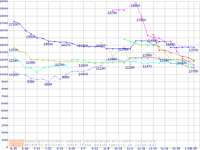 | [↓次グラフ]: | HDD 100~160GB未満(7200rpmクラス)の最安値推移 |