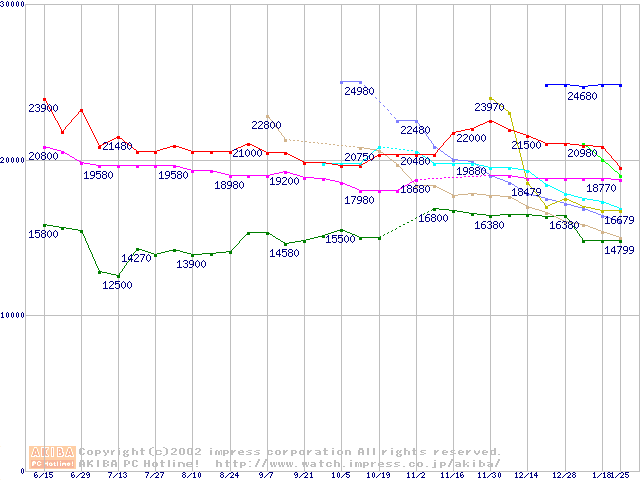 HDD 100~160GB未満(7200rpmクラス)の最安値推移