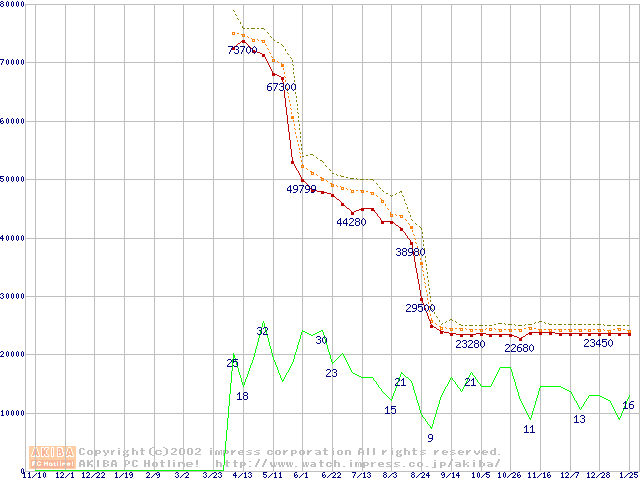 Socket 478 (micro-PGA,FSB 400MHz,L2 512KB,Northwood)の最安値推移