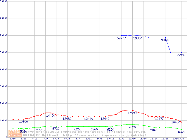 | [↓次グラフ]: | PC3200(DDR400) DDR SDRAM DIMMの最安値推移 |