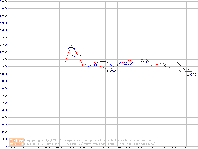 | [↓次グラフ]: | HDD 100GB以上(5400rpmクラス)の最安値推移 |