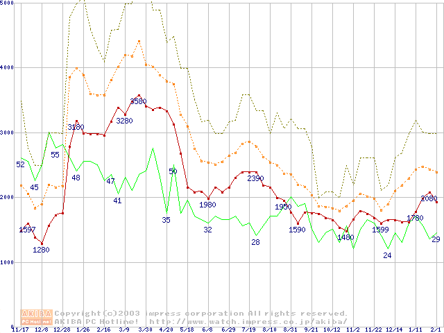 PC133 SDRAM DIMM CasLatency=3の最安値推移