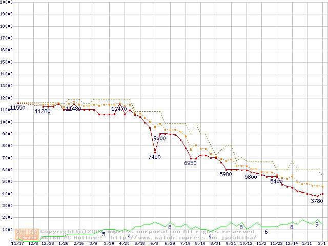 Athlon 1.1GHz(FSB200) バルクの価格推移