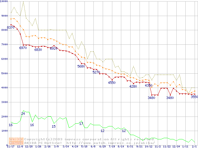 Socket A (PGA,FSB 200MHz,L2 64KB,Morgan)の最安値推移