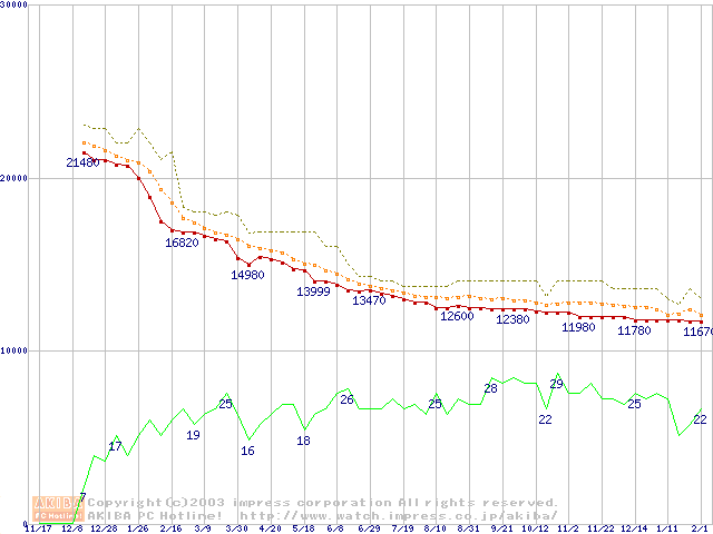 Travelstar 40GN IC25N030ATCS04 30GBの価格推移