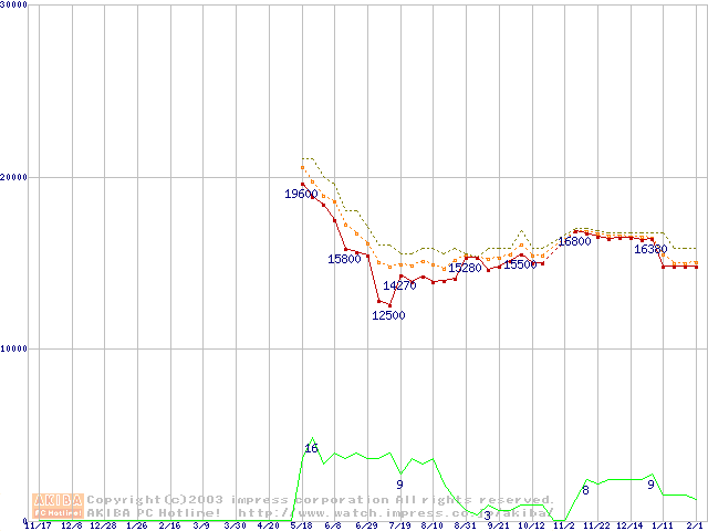 Deskstar 120GXP (7200rpm,2MB,UltraATA/100,BB)の最安値推移