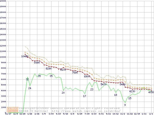 Celeron 1A GHz FC-PGA2 リテールパッケージの価格推移