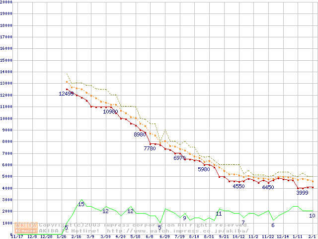 Socket A (PGA,FSB 200MHz,L2 64KB,Morgan)の最安値推移