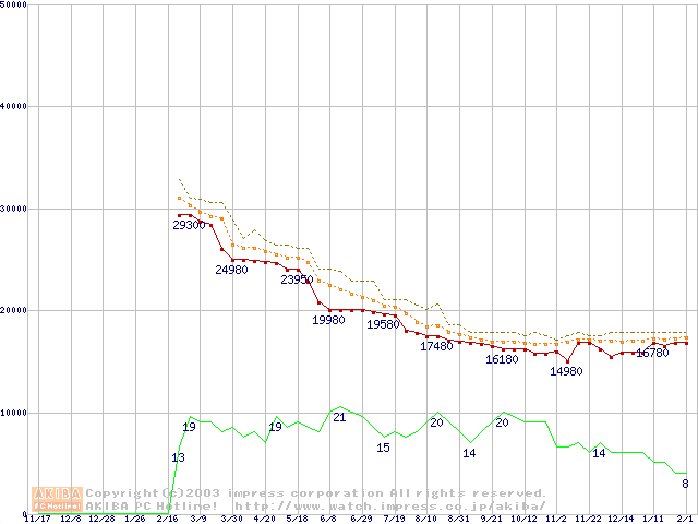 Athlon MP 1800+ (1.53GHz) リテールパッケージの価格推移