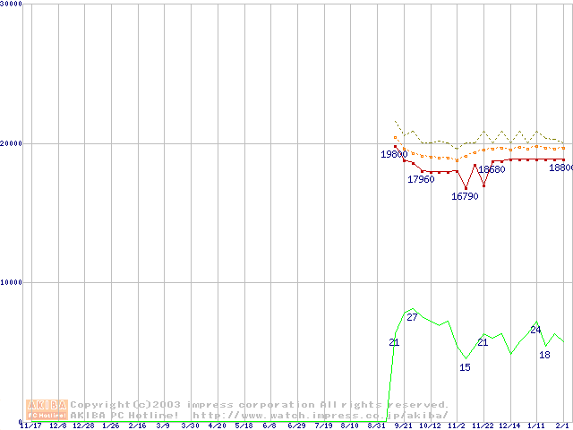 Athlon XP 2200+ (1.8GHz) リテールパッケージの価格推移