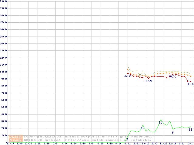 DiamondMax 16 (5400rpm,UltraATA/133,2MB,80GB/Platter,BB)の最安値推移