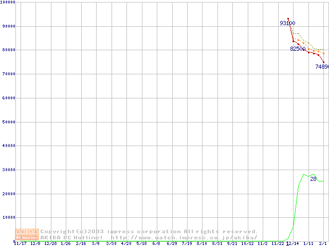 Socket 478 (micro-PGA,FSB 533MHz,L2 512KB,Hyper-Threading,Northwood)の最安値推移