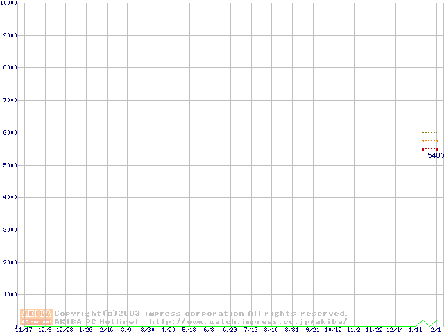 Socket 370 (FC-PGA,FSB 100MHz,L2 128KB,Coppermine)の最安値推移