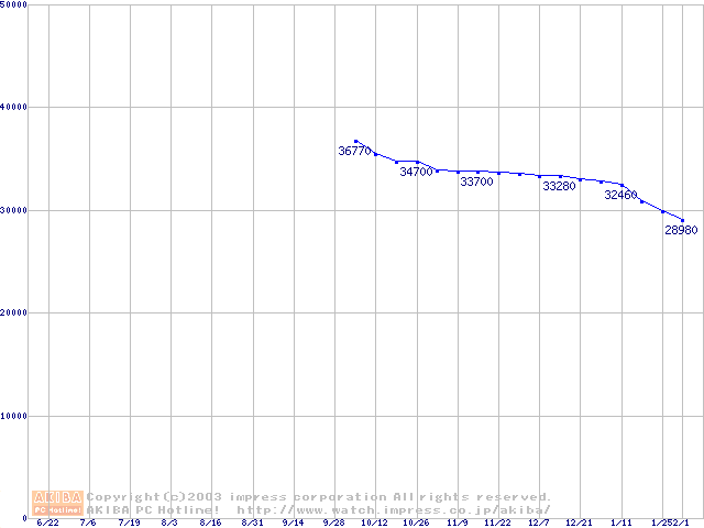 | [↓次グラフ]: | Deskstar 180GXP (7200rpm,2MB,UltraATA/100,FDB)の最安値推移 |