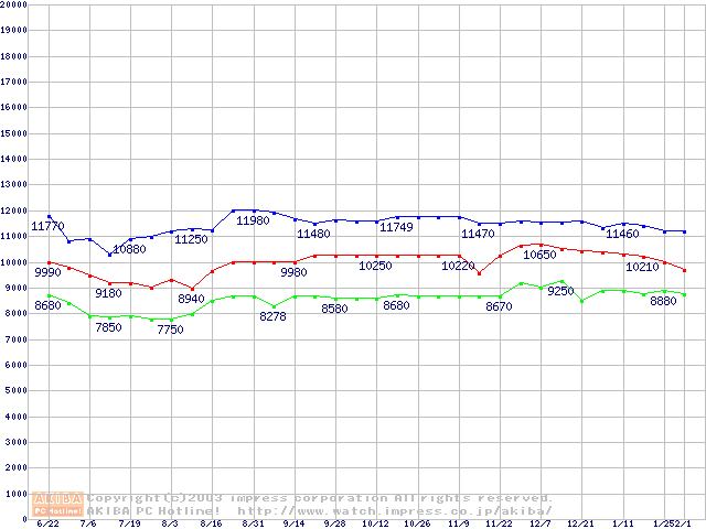 | [↓次グラフ]: | Barracuda 5400.1 (5400rpm,UltraATA/100,2MB,FDB)の最安値推移 |
