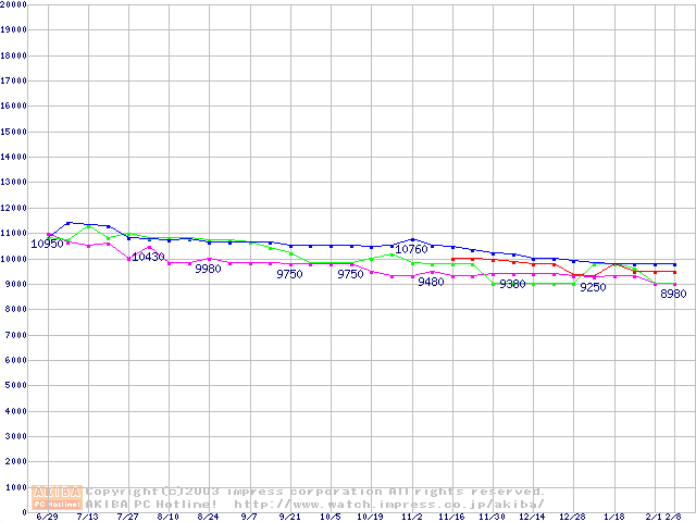 | [↑前グラフ]: | 2.5インチHDD主要製品の最安値推移 |