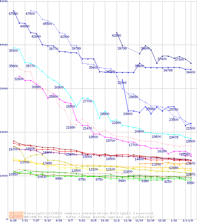 2.5インチHDD 60GB~80GB未満(9.5mm厚)の最安値推移