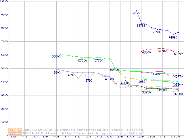 CPU主要製品(最安値2万円~3万円未満)の最安値推移