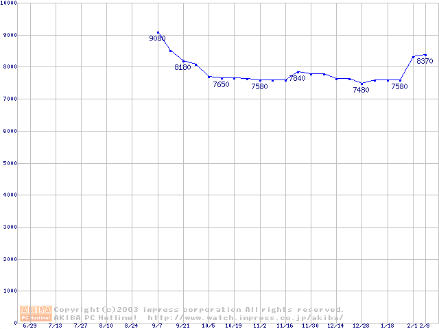 | [↓次グラフ]: | HDD 40GB~50GB未満(7200rpmクラス)の最安値推移 |