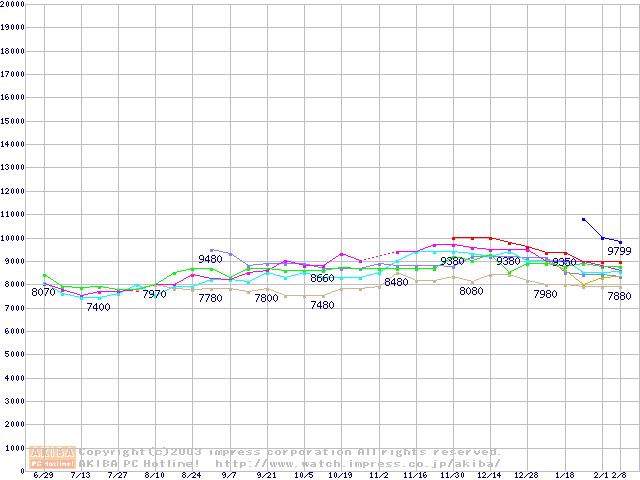 | [↓次グラフ]: | HDD 60GB~80GB未満(7200rpmクラス)の最安値推移 |